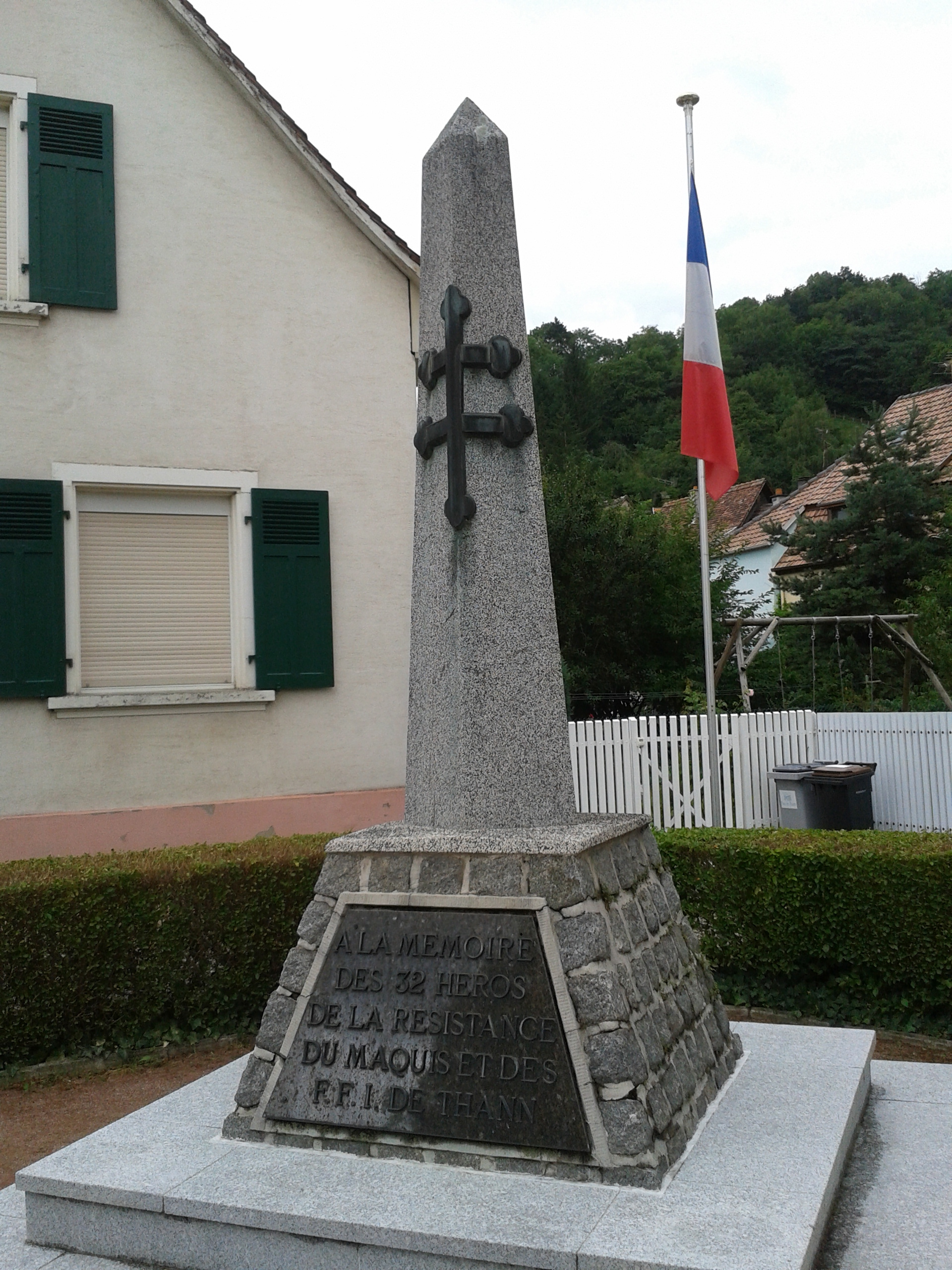 Statue in Thann and a plaque in Colmar, commemorating the heroes of the French Resistance movement