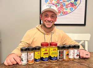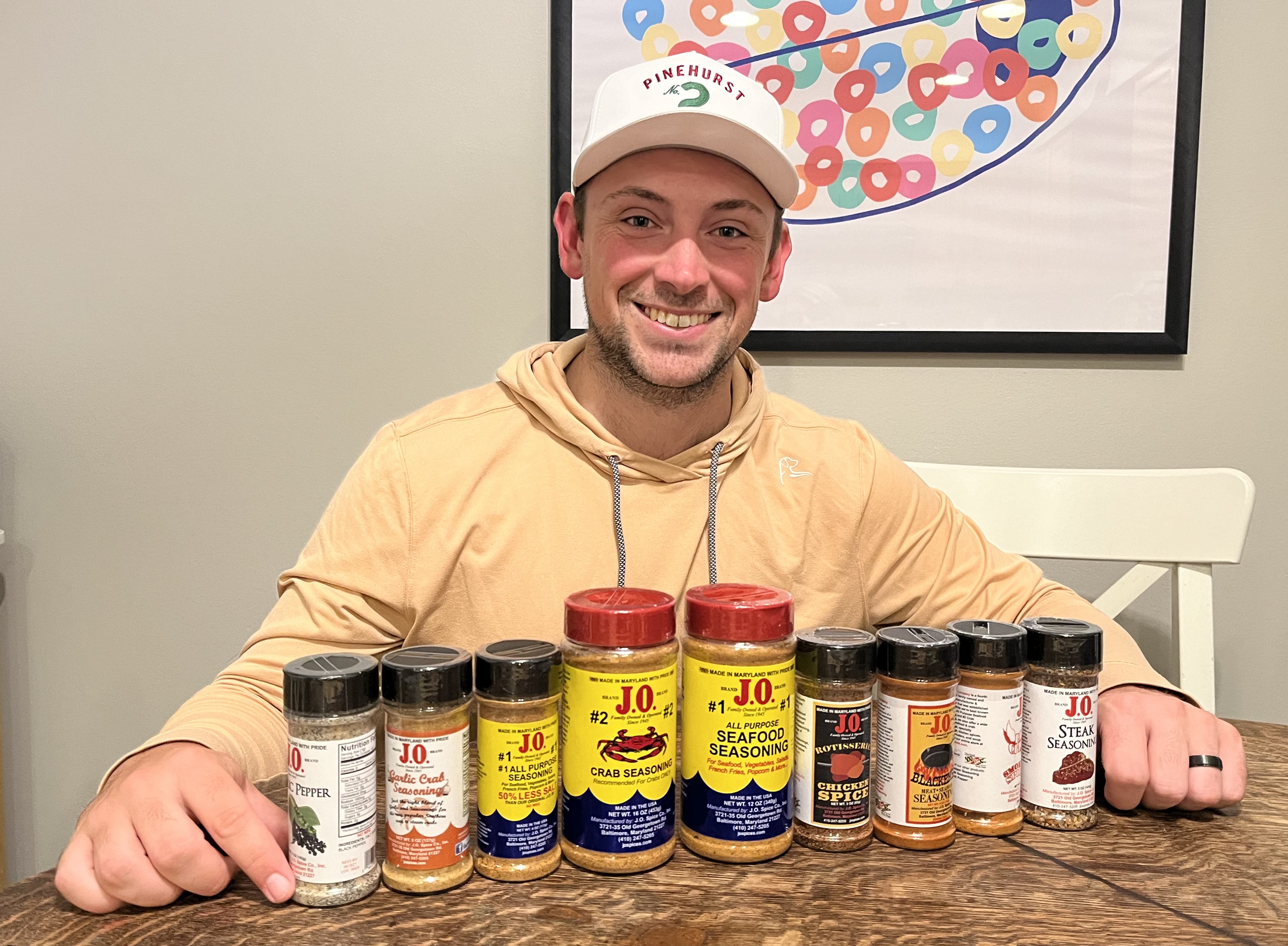 Tyler, proudly displays an assortment of J.O. spices.