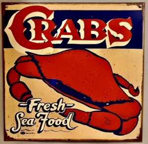 This colorful crab sign creation is by talented sign artist, Marty Mummert.