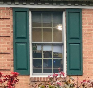 A mummy keeps watch over the neighborhood from this window.
