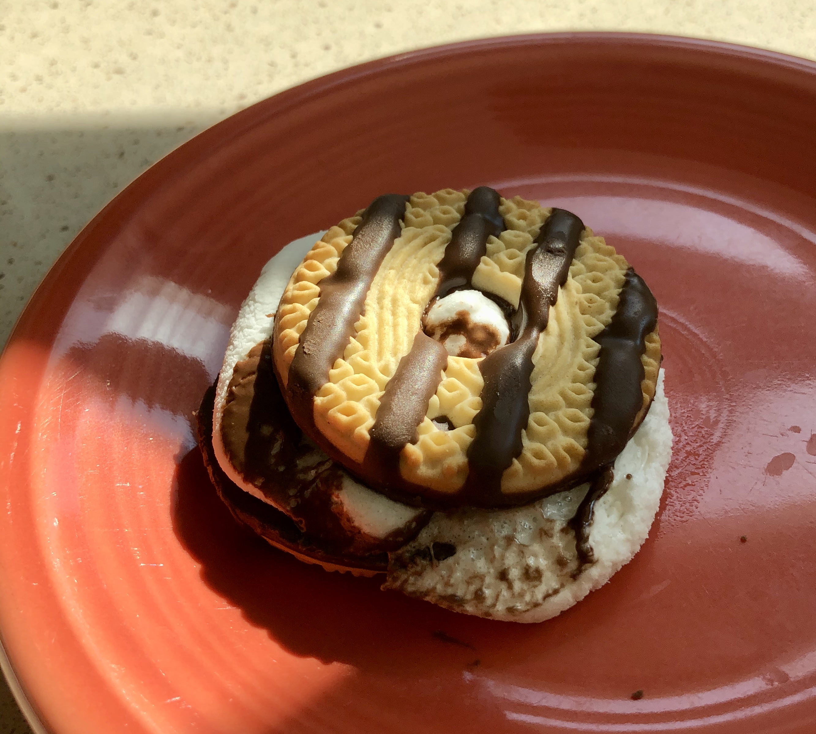 Place the other cookie, chocolate side down, on top of the marshmallow.