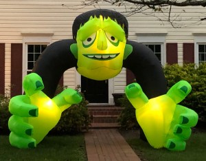 Frankenstein guards my neighbor’s front door.